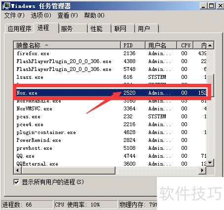 2、 打开任务管理器,找到夜神模拟器主程序对应的PID。