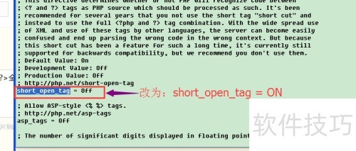 4、 修改 php.ini 文件,将 short_open_tag = Off 改为 On,保存文件后重启 Apache 服务,即可完成配置。