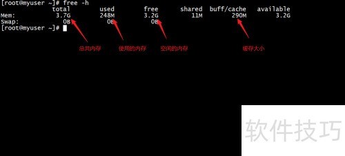 1、 可通过执行free -h或cat /proc/meminfo命令,查看系统整体内存使用状态。