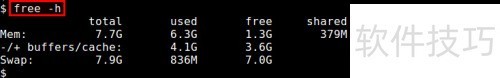 3、 free命令可快速查看内存使用状况,它汇总了/proc/meminfo中的信息,是了解系统内存使用情况的便捷工具。
