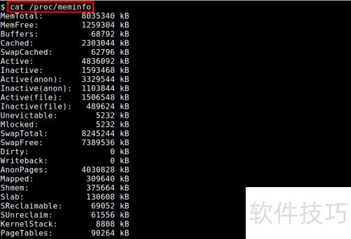 1、 查看内存使用最简单的方法是读取/proc/meminfo文件。该虚拟文件内容实时更新,包含了系统的内存信息,许多内存监控工具如free、ps、top等均基于此文件的数据进行展示。