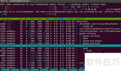 5、 htop命令可实时显示各进程的内存占用情况,提供进程的常驻内存、程序总内存及共享库大小等详细信息,支持横向与纵向滚动查看完整列表。