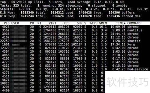 1、 使用top命令后,可查看%MEM列以了解内存占用情况。支持按进程或用户筛选,若需查看oracle用户下各进程的内存使用,可执行命令:top -u oracle,即可显示该用户所有进程的内存消耗详情。