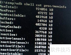 2、 通过执行cat proc/meminfo可查看手机内存使用详情。