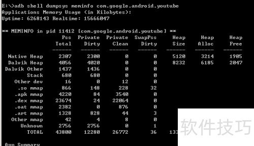 3、 详细信息可通过执行dumpsyst meminfo命令查看,具体结果所示。