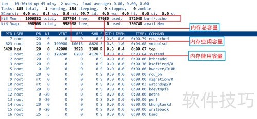 7、 使用 -k 或 -b 参数可按 KB 或字节显示内存占用。