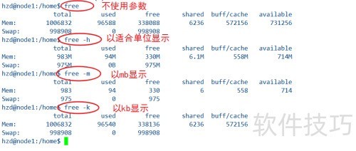 4、 free命令用于查看Linux系统内存使用情况,常用方法为在终端输入free及相关参数执行查询。