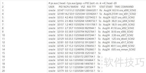 2、 ps命令用于查看各进程的内存占用,包括物理内存和虚拟内存的详细使用情况。