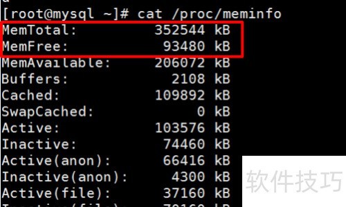 在Linux命令行中输入cat /proc/meminfo并回车,即可查看系统的内存使用详情。