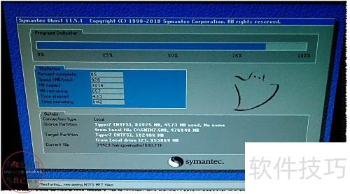 9、 安装顺利,GHOST进度可达百分之百完成。