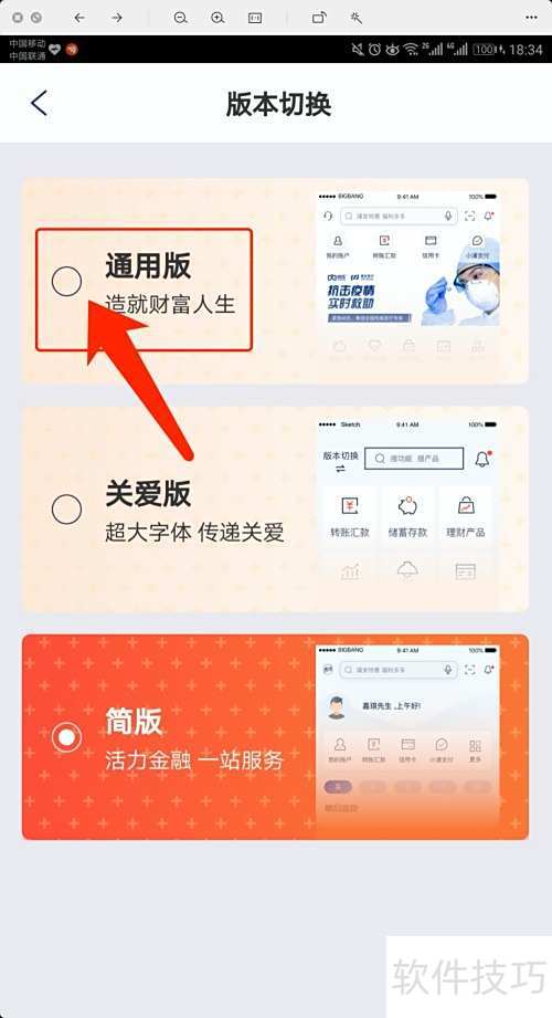 4、 点击完成后,浦发银行APP将自动进入通用版模式。