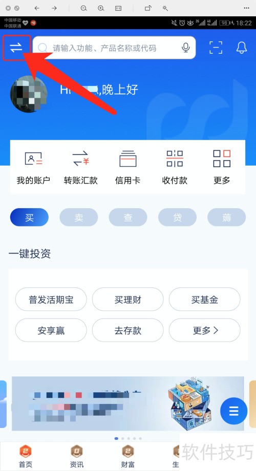 4、 点击确认后,浦发银行应用将自动进入通用版本界面。