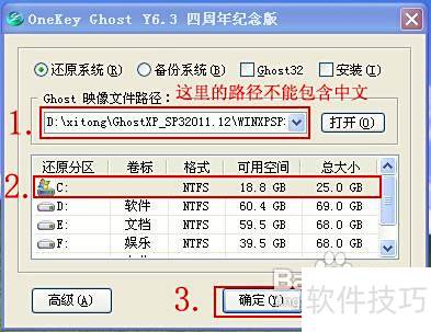 3、 启动硬盘安装程序后,进入界面选择C盘并确认,确保安装路径中不包含任何中文字符即可完成操作。