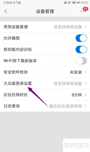 15、 向左滑动关闭大众版登录权限的开关即可。