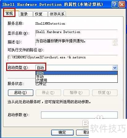 4、 在常规选项卡中点击启动类型旁的下拉箭头,从菜单中选择自动即可。