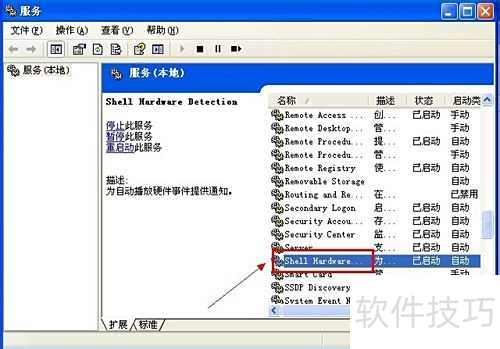 3、 在右侧窗口中找到Shell硬件检测服务,双击即可打开。