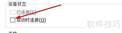 5、 界面右上角设备状态处,勾选启动时连接即可。
