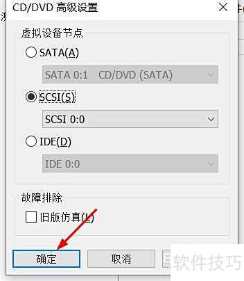 配置虚拟机CD/DVD的SCSI设备,选定对应节点即可。