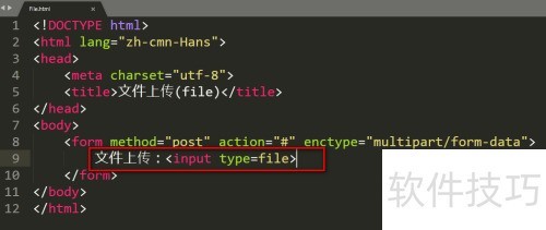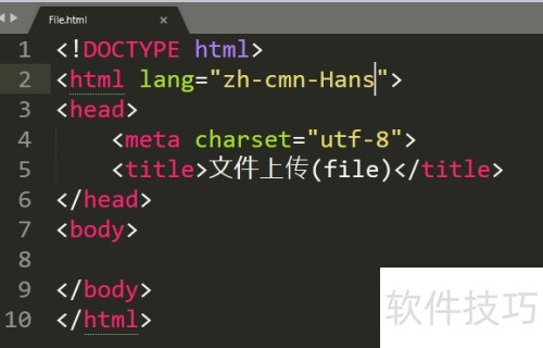 3、 在网页结构的头部设置标题为文件上传(file),并构建相应主体内容,所示。
