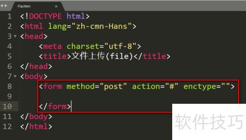 5、 上传文件时,需将enctype属性设置为multipart/form-data,具体设置方式所示。
