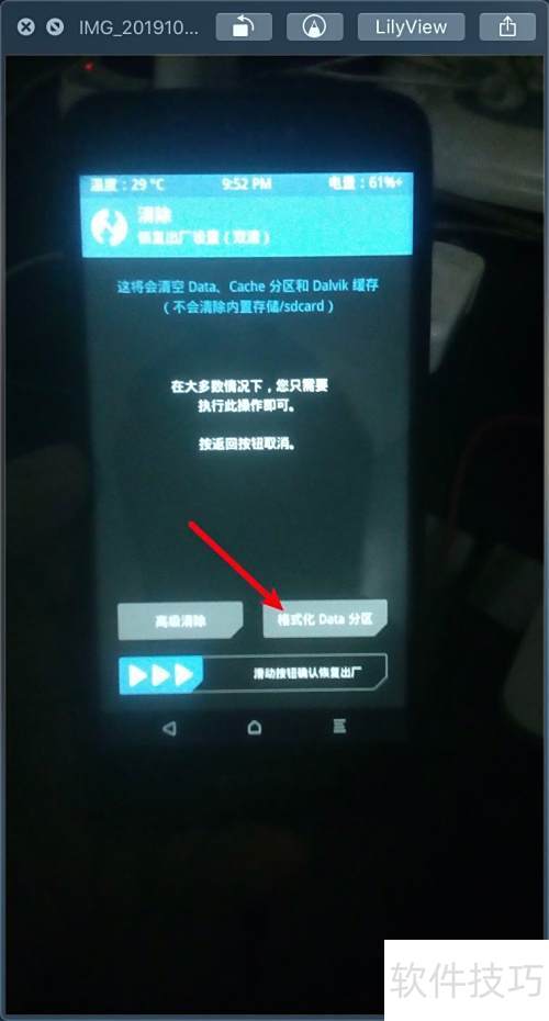 进入手机Recovery模式后,选择清除数据或格式化数据分区,确认操作即可完成对Data分区的格式化。