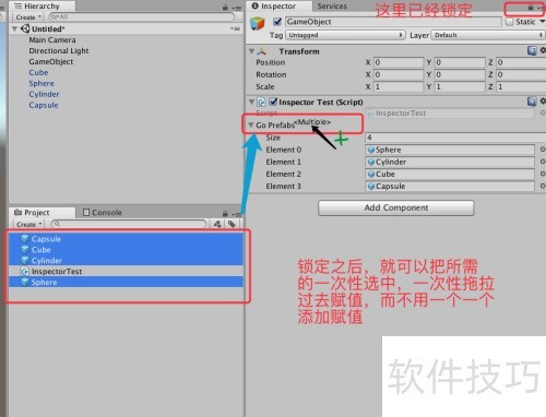 9、 锁定Inspector面板可实现批量快速赋值,显著提升操作效率,是实用且高效的工作技巧。