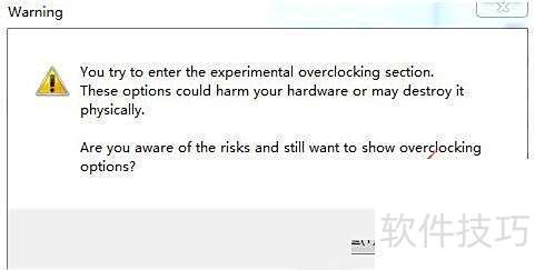 2、 随后将弹出提示框,提醒用户即将进入超频设置。由于部分显卡不支持超频,系统会给出警告,但可忽略此提示,直接默认点击是按钮继续操作即可。