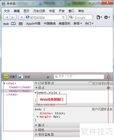6、 Web Inspector与FireBug操作相近,具体使用不再详述。