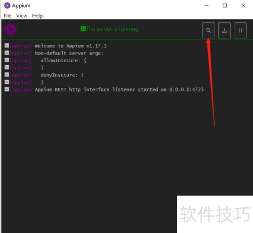 2、 点击Appium控制窗口的搜索图标启动工具