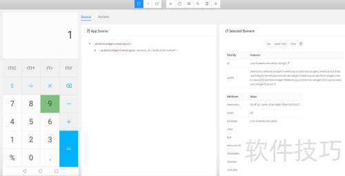 3、 只要Appium服务正常运行,就能成功建立会话,随后在开启Inspector时,可直接查看应用程序中的界面元素。