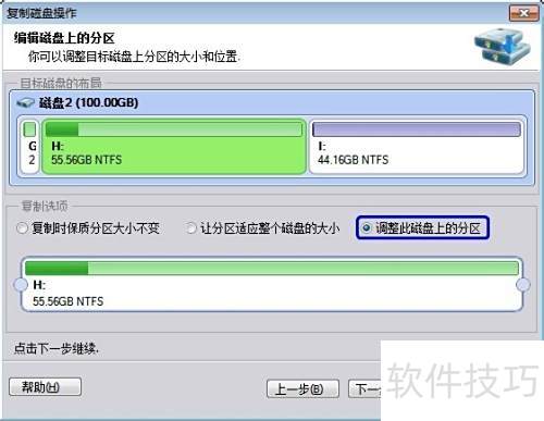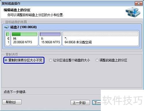 7、 复制的分区大小保持不变,填满磁盘2后多余空间将自动舍弃。