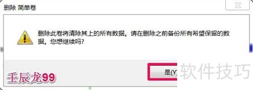 5、 在删除简单卷(D)提示框中,选择是(Y)确认操作。