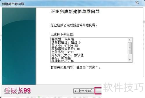 15、 新建卷向导已成功完成,请点击完成按钮。