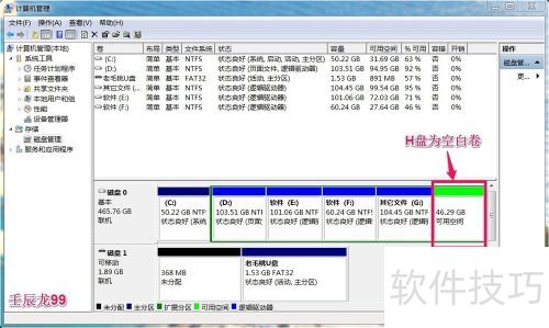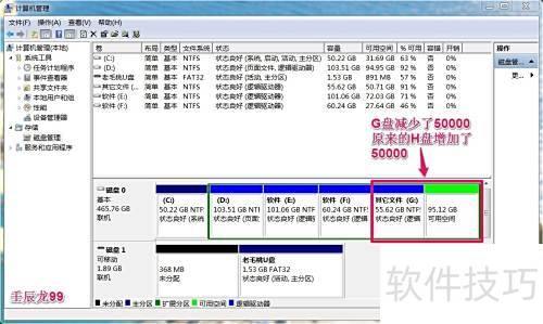 9、 压缩后,H盘空间增加了五万,而G盘相应减少了五万容量。