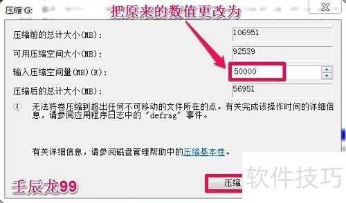 8、 在G压缩窗口中,将原数值修改为50000(需小于原值),然后点击压缩按钮即可完成操作。
