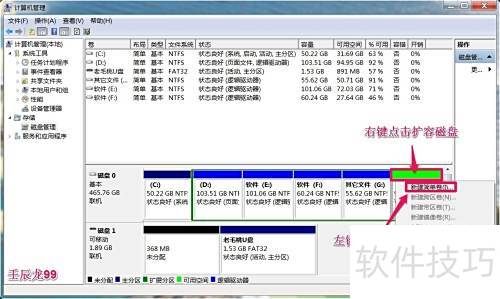 1、 通过磁盘管理工具调整分区大小,将一个磁盘的未分配空间扩展至另一磁盘。