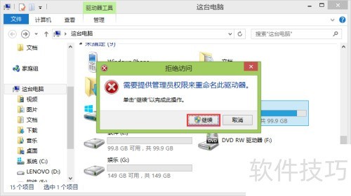 4、 修改后显示拒绝访问,点击继续即可完成操作。