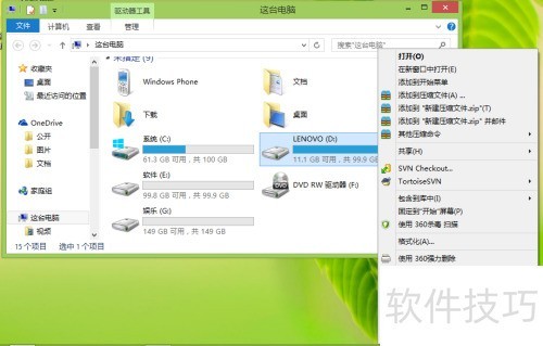 2、 以D盘为例,右键点击LENOVO(D),选择重命名选项。