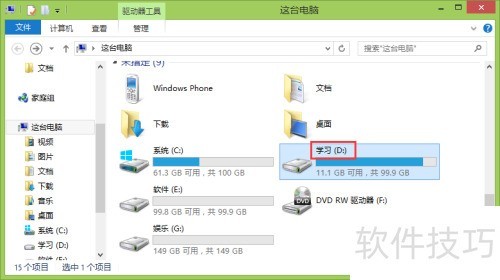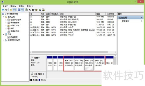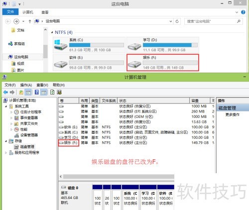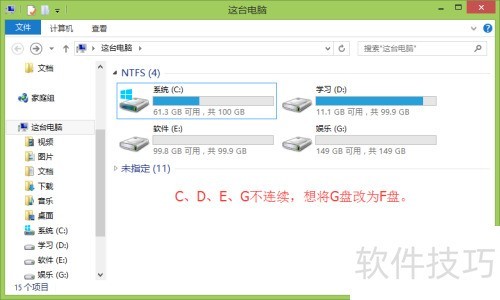 6、 查看磁盘驱动器符号,例如光驱显示为F盘,娱乐分区为G盘。