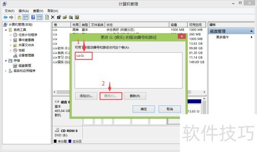 8、 右键点击娱乐(G),选择更改驱动器号和路径。