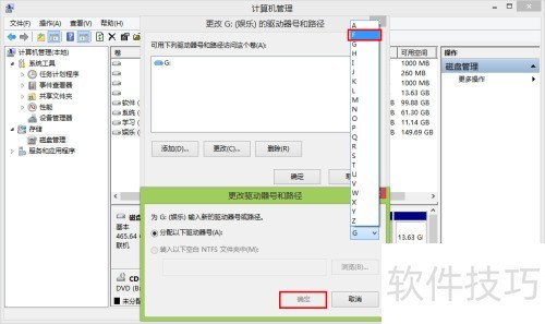 10、 在更改驱动器号和路径窗口中,选中F盘并确认操作。