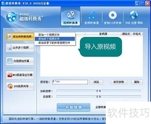 5、 超级转换秀不仅支持视频格式转换,还内置多种视频编辑功能,可在转换过程中实现视频剪辑操作。例如,可对视频进行分割、合并,添加文字、滚动字幕,叠加图片水印或装饰性相框等。这些编辑功能同样适用于将MKV格式转换为RMVB格式,以及其他各类视频转换任务。所示,若无需编辑,可直接跳过设置步骤;若希望在转换的同时对视频进行进一步处理,可根据需要在相应位置进行参数设定。若不需调整,点击下一步即可继续转换流程,操作简便高效。