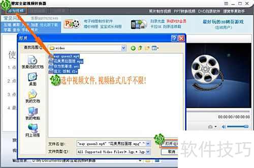 1、 启动转换软件后,点击主界面左上角的添加视频按钮,选择需转换为rmvb格式的视频文件,支持多种格式,全选后点击打开,即可将文件完整导入软件进行后续处理。