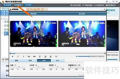 2、 选择需要编辑的视频文件,点击界面左上角的视频编辑按钮,进入编辑页面。页面包含视频截取、片段剪切、画面效果调节、添加水印等功能。在效果设置中,可调整视频的亮度、对比度、饱和度以及音频音量大小。完成各项参数修改后,务必点击确定按钮,保存所做更改并返回主操作界面,确保编辑内容生效。