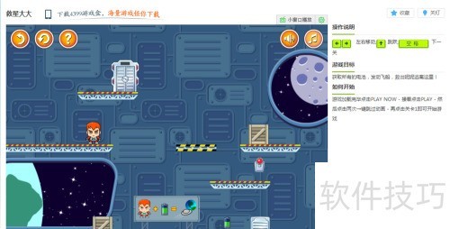 5、 使用方向键左右移动,上键跳跃,空格键进入下一关。
