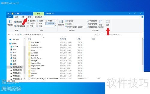 1、 打开C盘,选择查看,再点击选项进入设置。