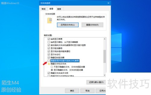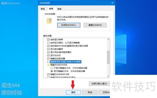 4、 取消勾选隐藏受保护的操作系统文件(推荐),如遇警告提示,请点击确认继续操作。