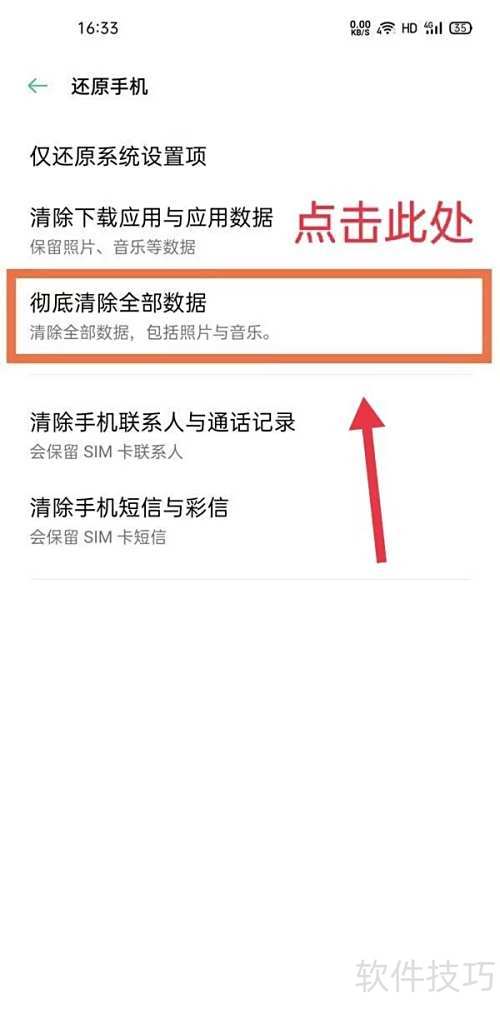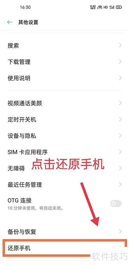 21、 点击恢复手机设置