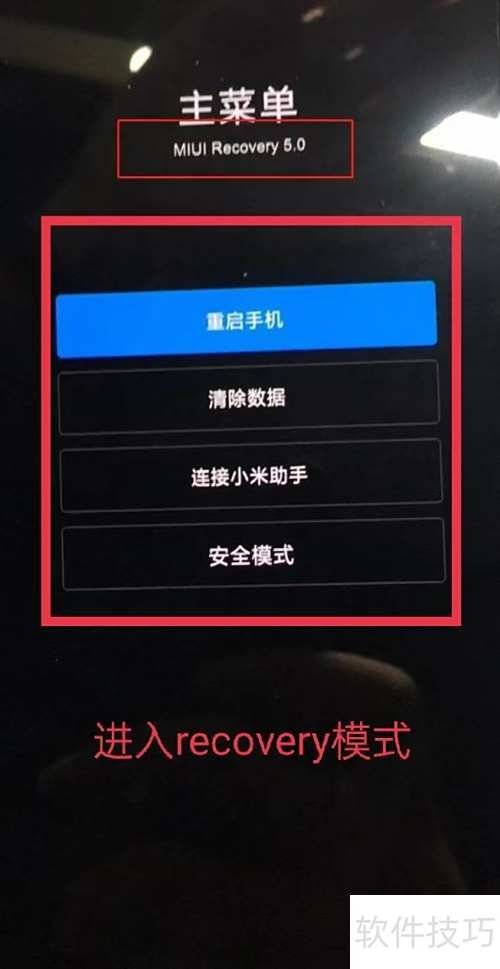 6、 手机将自动重启并进入恢复模式。
