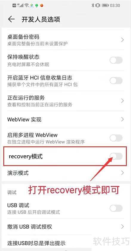 18、 开启recovery模式开关后,重启手机即可成功进入该模式。